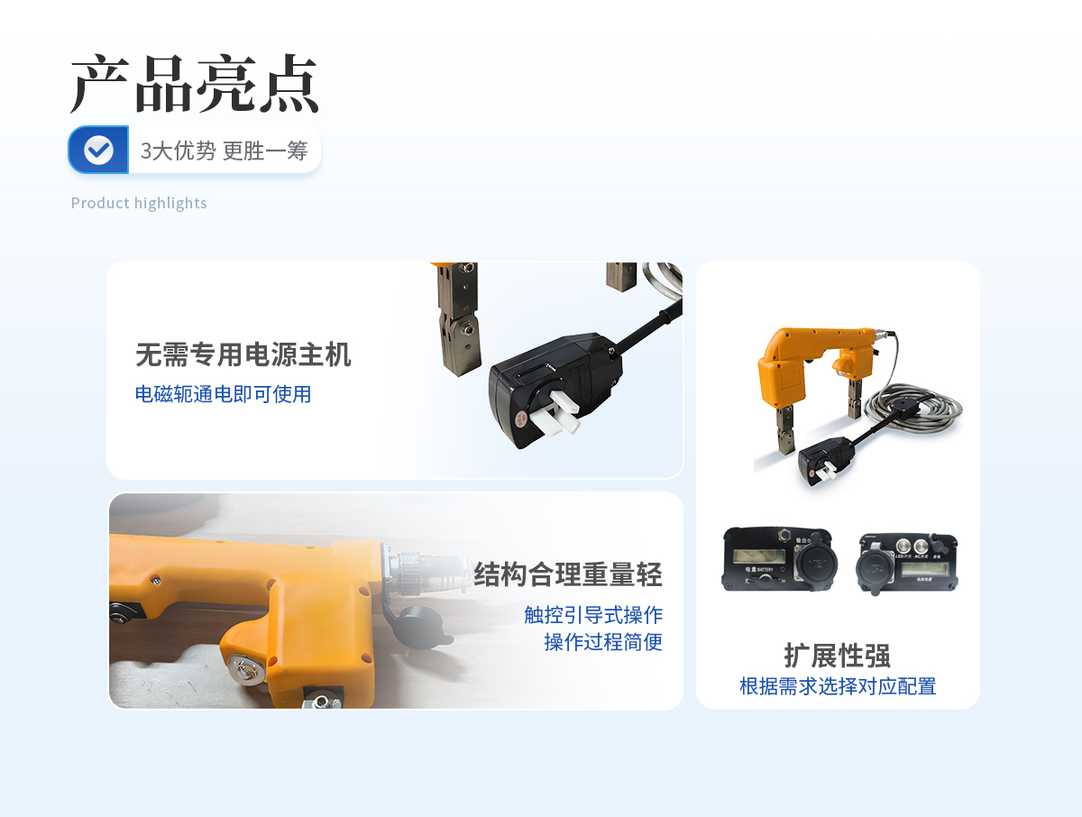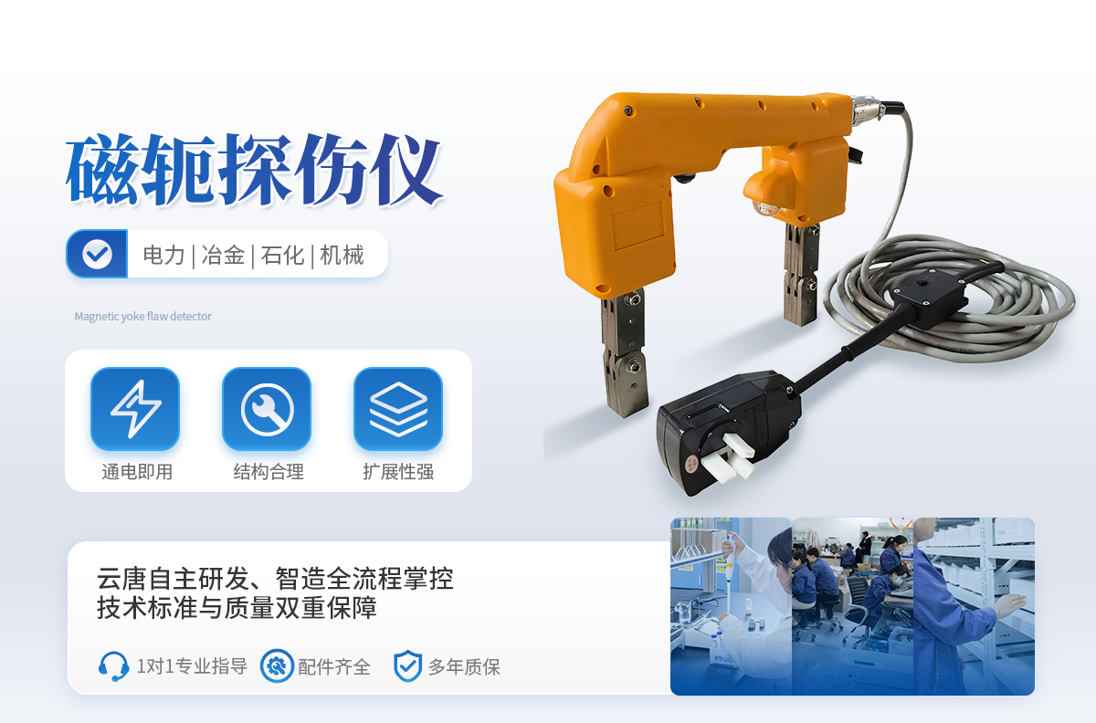 | 1、 無需專用電源主機(jī),電磁軛通電即可使用; | 2、 體積小巧,重量輕; | 3、 開模制作,結(jié)構(gòu)合理,手感舒適; | 4、 磁軛標(biāo)配白光燈,可選熒光燈(不額外加費(fèi)用); | 5、 配專用儀器箱; | 6、 擴(kuò)展性強(qiáng),可根據(jù)需要增配對應(yīng)的專用電池包,通過專用電源來實(shí)現(xiàn)交流、直流磁化功能。可滿足不方便拖電源線的場所使用。 |