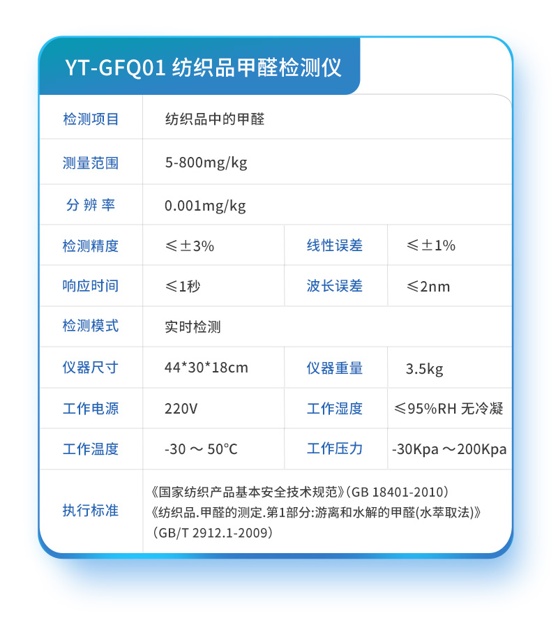 紡織品甲醛檢測(cè)儀 YT-FQ01 技術(shù)參數(shù):