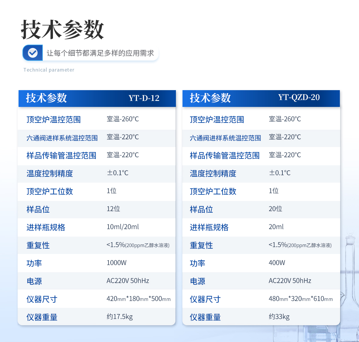 | 1.主要功能有: (1)液晶顯示:方法參數設置、實時工作狀態、運行時間、年-月-日-時等; (2)頂空瓶、進樣系統和取樣(進樣)導管,三路同時加熱控溫; | 2.樣品區溫度控制范圍:室溫-260℃,以增加1℃任設; | 3.樣品傳送管線溫度控制范圍:室溫-220℃,以增加1℃任設 | 4.閥進樣系統溫度控制范圍:室溫-220℃,以增加1℃任設: | 5.進樣加壓范圍:0-0.4Mpa (連續可調); | 6.頂空瓶工位:12個。 |