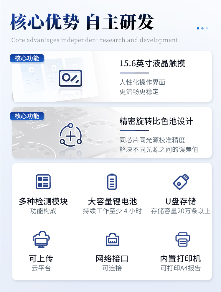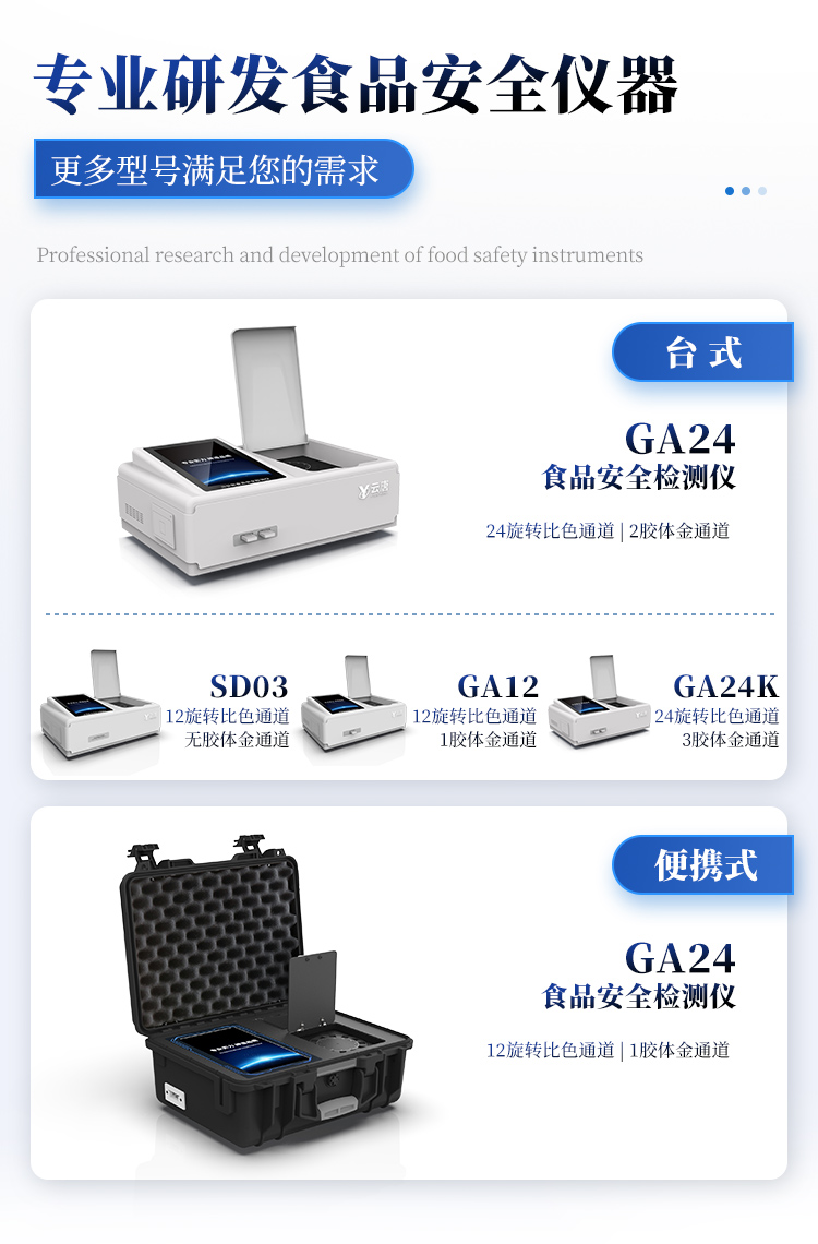 | 1. 功能構成:主要包括分光光度模塊、新型農殘檢測模塊、膠體金檢測模塊、熒光檢測模塊、數字化管理模塊等,所有模塊集成一體,可快速檢測200多種食品安全項目,如獸藥殘留、農藥殘留、非法添加劑、細菌數值等指標。 | 2. 檢測樣品種類:餐具及廚房用品、瓜果蔬菜及其制品、水產品及其制品、畜禽產品及其制品、嬰幼兒乳品及奶粉制品、蜂蜜、糧油及其制品、調味品(食醋、醬油、味精、鹽等)、酒類茶葉及其制品、食用菌、飲料、蛋類藥物殘留(雞蛋,鴨蛋等)、米豆面制品、糖果糕點類(小食品)、薯類及膨化食品、瓶(桶)裝飲用水、添加食用色素的食品、使用添加劑的食品、含有有毒有害物質的相關食品。 | 3、顯示屏幕:儀器采用15.6英寸液晶觸摸屏顯,搭配運行安卓智能操作系統,主控芯片采用ARM Cortex-A7,RK3288/4核處理器,主頻1.88Ghz,操作方便,性能更強。 | 4、供電模式:儀器交直流兩用,直流12V供電,可連接車載電源,配18ah大容量充電鋰電池,電量可實時顯示,無外部電源條件下可持續工作至少 4 小時。 | 5、檢測通道:≥24通道;采用精密旋轉比色池設計,使用同芯片同光源校準精度,解決不同光源之間的誤差值,更加準確**,采用高精度進口四波長冷光源,每個通道均配置 410、520、590、630nm 波長光源,標配**的光路切換裝置,**光路切換功能可實現64波長,并且所有檢測項目可實現所有通道同時檢測. | 6、通訊接口:配備無線通信模塊、4G(APN)通訊模塊、藍牙傳輸,同時具有雙USB接口以及RJ45網線接口,可以多方式實現數據保存及數據傳輸。 | 7、存儲方式:支持U盤存儲,兩個標準USB接口,免驅動安裝。檢測結果存儲容量20萬條以上,可生成Excel表格進行拷貝,并具有登錄保護功能。 | 8、操作系統:儀器可在同一檢測界面自動對應相關檢測通道,一次性選擇不少于11個樣品名稱,無需退出界面,節省操作時間。并可以對每個通道屬性和樣品信息單獨進行編輯,例如送檢單位、人員,檢測人員等,打印時勾選打印顯示。 | 9、數據集成系統:設備首頁自動匯總分析檢測數據,包含:周檢測數據、月檢測數據,全部檢測總數量,包含檢測總數,合格數,不合格數,以及相關柱形分析圖,各項檢測數據一目了然,無需電腦查詢,更加快捷直觀。 | 10、數據庫系統:十幾項數據庫分類管理儀器:包含項目類型、項目數據、檢測數據、歷史記錄、國標信息、曲線信息、采樣信息、檢測信息、受檢信息、復核信息、圖表信息、光源校準信息、打印樣式信息、樣品庫信息等等,數據庫之間互相協調聯動保證數據的真實完整性。同時產品數據庫以及歷史檢測記錄支持一鍵檢索功能。 | 11、限量規判系統:具有限量查詢、添加物質合規判定系統。檢測出結果后,系統自動調用系統數據庫中相關國標進行比對判定,客觀顯示判定結果是否合格。 | 12、項目預設系統:儀器具有任務預設模塊,一鍵提前預設,給出方便快捷的新檢測方案,每一個任務分別可以設置不同的樣品、批次、編號、來源、備注、抽樣信息、檢測信息、受檢信息、復核信息等更多信息。樣品送檢時一鍵調取保存信息,并可多次調取,適用于大批量檢測業務,可以大大提高檢測效率。 | 13、數據監管系統:同步對接監管平臺,數據可局域網和互聯網數據上傳,檢測結果可直接傳至食品安全監管平臺。進行區域食品安全監管及大數據分析處理與數據統計,監測區域食品安全長短期動態及問題預估、預警。 | 14.1、全新打印系統:內置全新打印機,新創自定義打印方式,可按需靈活勾選控制:產品合格證(國家農業部標準要求),二維碼,抽樣信息、檢測信息,受檢信息、復核信息、抽樣日期、檢測日期等信息的打印。 | 14.2、A4紙版本報告打印功能:設備擁有兩種結果展示方式,可以自動生成A4打印模板和小票打印模板兩種樣式,可通過WiFi及網線等方式連接外置打印機可進行打印。 | 15、膠體金檢測模塊:采用單通道CMOS成像處理技術及膠體金免疫層析技術,可讀取膠體金卡數據,自動采集、處理分析,將檢測結果顯示,并可根據參考限值自動判斷檢測結果,可檢測常見的獸藥殘留、生物毒素、抗生素、違禁添加物等。 | 15.1、可即時檢測單聯卡及三聯卡; | 15.2、檢測通道:2個通道; | 15.3、檢測方式:消線法和比色法; | 15.4、顯示模式:陰性或陽性; | 15.5、曲線形式:插入式掃描方式,顯示金標卡圖像,實時生成、識別CT曲線圖,無需手動調整。兼容市場上其他金標卡,使用耗材不受限制。 | 16、熒光檢測模塊:快速檢測水質中微生物、固體物細菌含量。利用“熒光素酶—熒光素體系”快速檢測三磷酸腺苷(ATP)。以ATP含量表明樣品中微生物與其他生物殘余得多少,用于判斷衛生狀況。 適用于食品、餐具、手、液體等表面及水質潔凈度的檢測。 | 16.1、檢測通道:雙通道 檢測精度:********** | 16.2、檢測范圍:0 to 99999 RLU | 16.3、檢測時間:15 秒 | 16.4、檢測干擾:±5﹪或±5 RLU | 16.5、操作溫度范圍:5℃到 40℃ | 16.6、操作濕度范圍:20—85﹪ | 16.7、開機 30 秒自檢、內置自校光源、自動判斷合格與不合格、自動統計合格率 。 | 17、儀器具備遠程升級功能,可定向分客戶分儀器更新,開機后自動更新,并可持續性免費更新系統版本,無需像傳統產品返廠更新,節省時間及人力成本并避免了物流運輸返廠升級導致設備損壞的潛在風險。 |