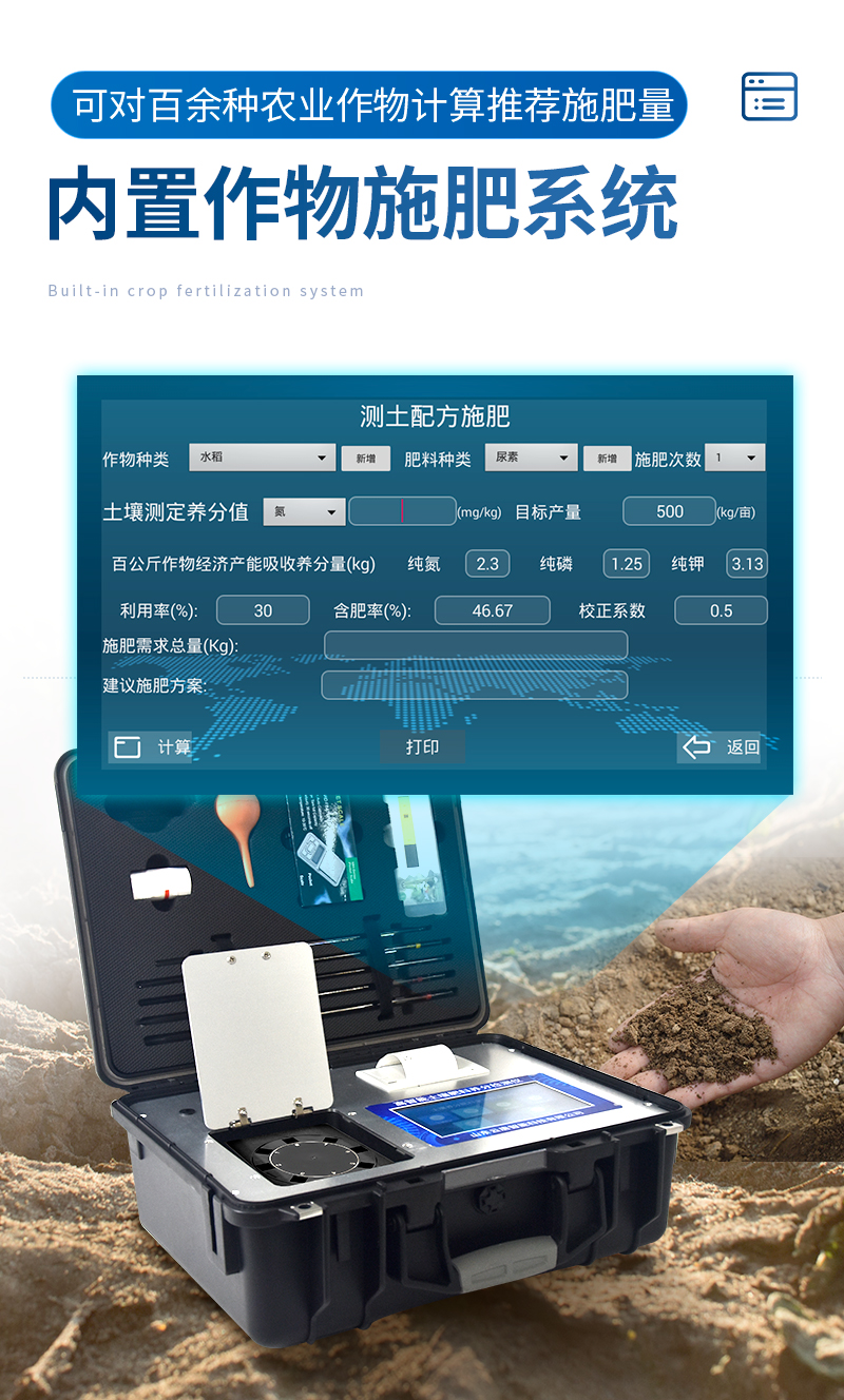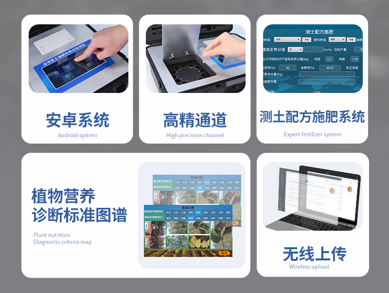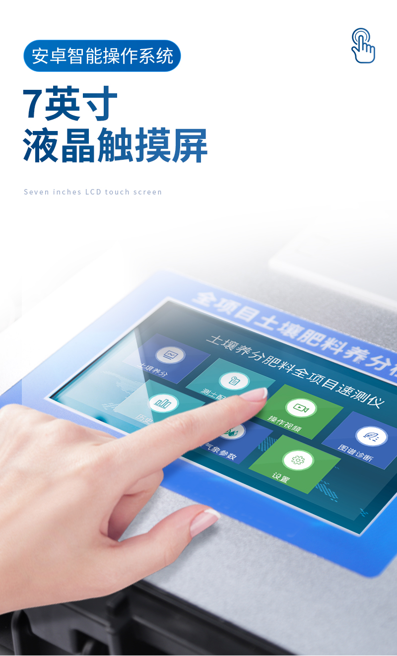 | ★1、Android安卓智能操作系統(tǒng),主控芯片采用ARM Cortex-A7,RK3288/4核處理器,主頻1.88Ghz,運(yùn)轉(zhuǎn)速度更快速,穩(wěn)定性更強(qiáng)。 | ★2、18個(gè)檢測(cè)通道,一次性可快速檢測(cè)18個(gè)樣品,極大提升檢測(cè)效率,降低檢測(cè)成本。 | ★3、采用高精度濾光片技術(shù)自主**分析方法(**號(hào):** 2020 2 1763837.9),權(quán)威認(rèn)證。 | ★4、檢測(cè)過(guò)程中內(nèi)置校準(zhǔn)功能,智能恒流穩(wěn)壓,光強(qiáng)自動(dòng)校準(zhǔn),確保檢測(cè)準(zhǔn)確度,取得中國(guó)計(jì)量科學(xué)研究院的《校準(zhǔn)證書(shū)》。 | ★5、儀器標(biāo)配wifi無(wú)線上傳、4G聯(lián)網(wǎng)傳輸、GPRS無(wú)線遠(yuǎn)傳,快速上傳數(shù)據(jù)。 | ★6、配有智慧云農(nóng)業(yè)平臺(tái),儀器連入無(wú)線網(wǎng)絡(luò)后,可將檢測(cè)數(shù)據(jù)可選擇性或批量無(wú)線上傳,方便用戶(hù)進(jìn)行長(zhǎng)期數(shù)據(jù)管理和可視化分析。 | 7、儀器配同時(shí)具有USB接口、以太網(wǎng)接口,內(nèi)置大容量?jī)?nèi)存,并可隨時(shí)用U盤(pán)拷貝數(shù)據(jù)。 | ★8、可用手機(jī)隨時(shí)登錄云平臺(tái)在線移動(dòng)查看歷史數(shù)據(jù) | ★9、內(nèi)置作物專(zhuān)家施肥系統(tǒng),可對(duì)百余種全國(guó)農(nóng)業(yè)經(jīng)濟(jì)作物、果樹(shù)等的目標(biāo)產(chǎn)量計(jì)算推薦施肥量,依據(jù)施肥配方科學(xué)指導(dǎo)農(nóng)業(yè)生產(chǎn)。測(cè)土配方施肥結(jié)果可打印,打印內(nèi)容包含:作物種類(lèi)、肥料種類(lèi)、目標(biāo)產(chǎn)量、需求總量、建議施肥方案。 | 10、內(nèi)置植物營(yíng)養(yǎng)診斷標(biāo)準(zhǔn)圖譜,根據(jù)各農(nóng)作物營(yíng)養(yǎng)缺失的圖片,進(jìn)行葉面對(duì)比,診斷豐缺。 | ★11、4波長(zhǎng)專(zhuān)業(yè)測(cè)試?yán)涔庠矗t、藍(lán)、綠、橙),光源波長(zhǎng)穩(wěn)定,長(zhǎng)時(shí)間連續(xù)工作光源無(wú)溫漂現(xiàn)象,壽命長(zhǎng)達(dá)10萬(wàn)小時(shí)級(jí)別,重現(xiàn)性好,準(zhǔn)確度高。 | 12、比色池部分采用標(biāo)準(zhǔn)1cm比色皿,無(wú)機(jī)械位移及磨損,光路測(cè)試定位**,有效屏蔽外光干擾,保證檢測(cè)結(jié)果優(yōu)于國(guó)標(biāo)要求。 | ★13、儀器系統(tǒng)內(nèi)帶有樣品前處理操作視頻,各種樣品檢測(cè)方法點(diǎn)擊視頻模塊即可觀看,檢測(cè)人員無(wú)需自學(xué)說(shuō)明書(shū),指導(dǎo)教學(xué)方便快速,方便新手快速操作。 | 14、內(nèi)置新一代高速熱敏打印機(jī)(無(wú)需色帶),打印內(nèi)容包含:檢測(cè)單位、檢測(cè)人員、檢測(cè)項(xiàng)目、通道號(hào)、吸光度、養(yǎng)分含量(mg/kg)、檢測(cè)時(shí)間、以及二維碼等信息 | ★15、高靈敏7寸真彩觸摸屏,采用更加**和人性化操作,高清晰高交互顯示,大程度降低傳統(tǒng)儀器的繁瑣操作和失誤,并取得多項(xiàng)《軟件著作權(quán)》。 | 16、內(nèi)置時(shí)鐘功能,方便操作時(shí)間記錄,長(zhǎng)期歷史追溯。 | 17、可設(shè)置多賬戶(hù)賬號(hào)密碼登錄,**UI交互界面,不同的用戶(hù)可自由添加編輯檢測(cè)信息,保存后可長(zhǎng)期使用。 | 18、GPS功能:可在野外作業(yè)時(shí)記錄經(jīng)緯度地點(diǎn),滿(mǎn)足特殊用戶(hù)需求。 | 19、內(nèi)置低電壓提示功能,可在檢測(cè)時(shí)明確電量,避免測(cè)試數(shù)據(jù)偏移,同時(shí)具有斷電保護(hù)功能,斷電自動(dòng)保存數(shù)據(jù),防止數(shù)據(jù)丟失。 | 20、交直流兩用供電方式,內(nèi)置大容量充電鋰電池,滿(mǎn)電狀態(tài)下可連續(xù)工作10余小時(shí),同時(shí)可外接車(chē)載電源蓄電。 | ★21、儀器具有中英文切換功能,可滿(mǎn)足出口要求。 | 22、高強(qiáng)度PVC工程塑料手提箱設(shè)計(jì),堅(jiān)固耐用,便于攜帶。 |