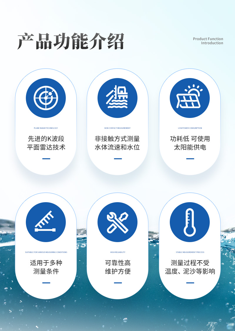 1. 非接觸式測量,結合斷面參數計算流量,不受風、溫度、霧霾、泥沙、漂浮物等影響;