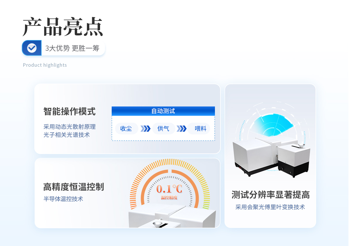 | 測試分辨率顯著提高:采用匯聚光傅里葉變換技術,不僅克服了透鏡孔徑對散射角的限制,并能根據測試樣品的粒度分布選擇合適的檔位進行密級測試,具有**的分辨能力和準確度。 | 科學合理的干法分散系統:將超聲波分散、機械攪拌、循環通道合理的集于儀器內部,保證顆粒測試過程中的均勻分散和分布,有效地避免了外置分散系統因管路長而導致的顆粒分布不均勻、大顆粒沉積等不良現象,從而保證測試結果的代表性。此外,針對貴重微量樣品可選配10ml微量樣品池,降低其測試成本。 | 智能操作模式:該款儀器具有智能化全自動操作模式,實現一鍵測試,即只要根據提示加入樣品,點擊“自動測試”,所有操作過程包括進水、分散、循環、測試、清洗、數據記錄、數據分析、保存及打印等全部自動完成,不僅減輕了測試人員的工作量,而且消除了人為因素的干擾誤差,進一步提高了測試精度和結果的真實性。 | 自動對中系統:采用精密四項混合式步進電機組成光路自動對中系統,微動精度達到微米級別,使儀器光路始終處于**狀態,在消除手動對中光路所帶來的麻煩和困難的同時也提升了測試結果的準確性和穩定性。 | 權威的校準方式:在整個測試范圍內采用微米級、亞微米級以及納米級國家粒度標準物質連續進行校準,保證全量程內**的測試分辨率和準確度。 | 超聲自清洗功能:減少客戶樣品窗拆卸清洗次數,保證樣品窗清潔 |