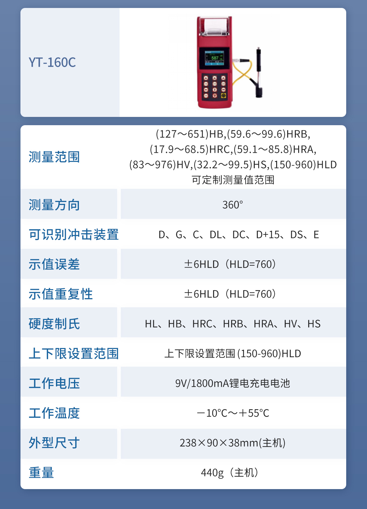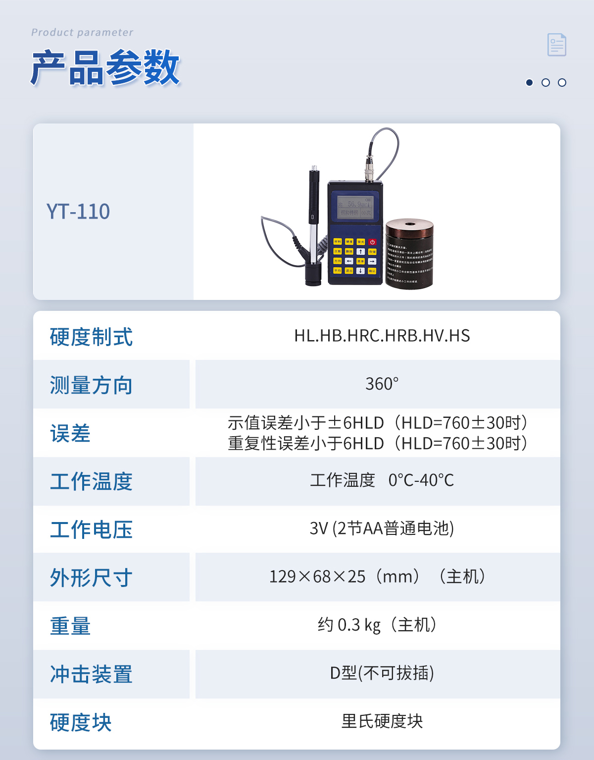 布洛維里氏硬度計 YT-110 技術參數