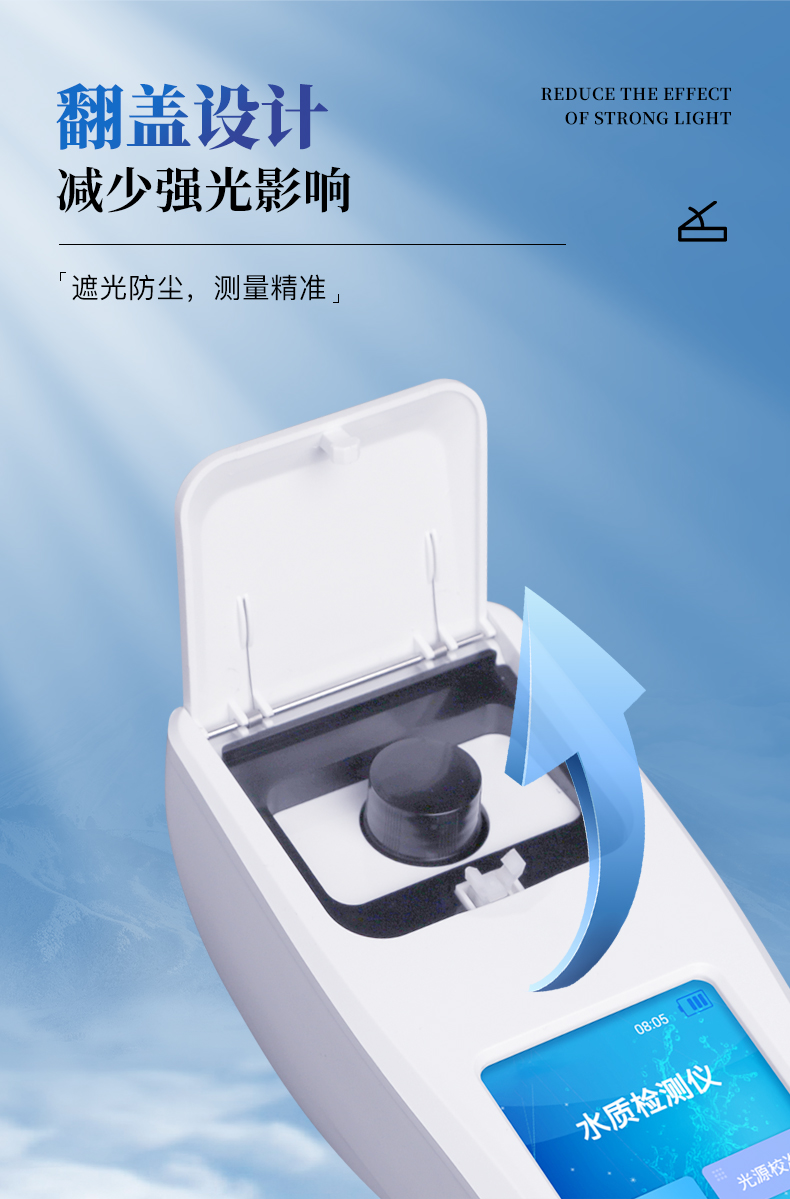 提取一定量水體樣品,經(jīng)過前處理后根據(jù)不同檢測(cè)項(xiàng)目按照試劑說明書滴入檢測(cè)試劑,檢測(cè)試劑會(huì)與水體中的待測(cè)物質(zhì)發(fā)生反應(yīng),反應(yīng)液呈現(xiàn)特定的顏色。