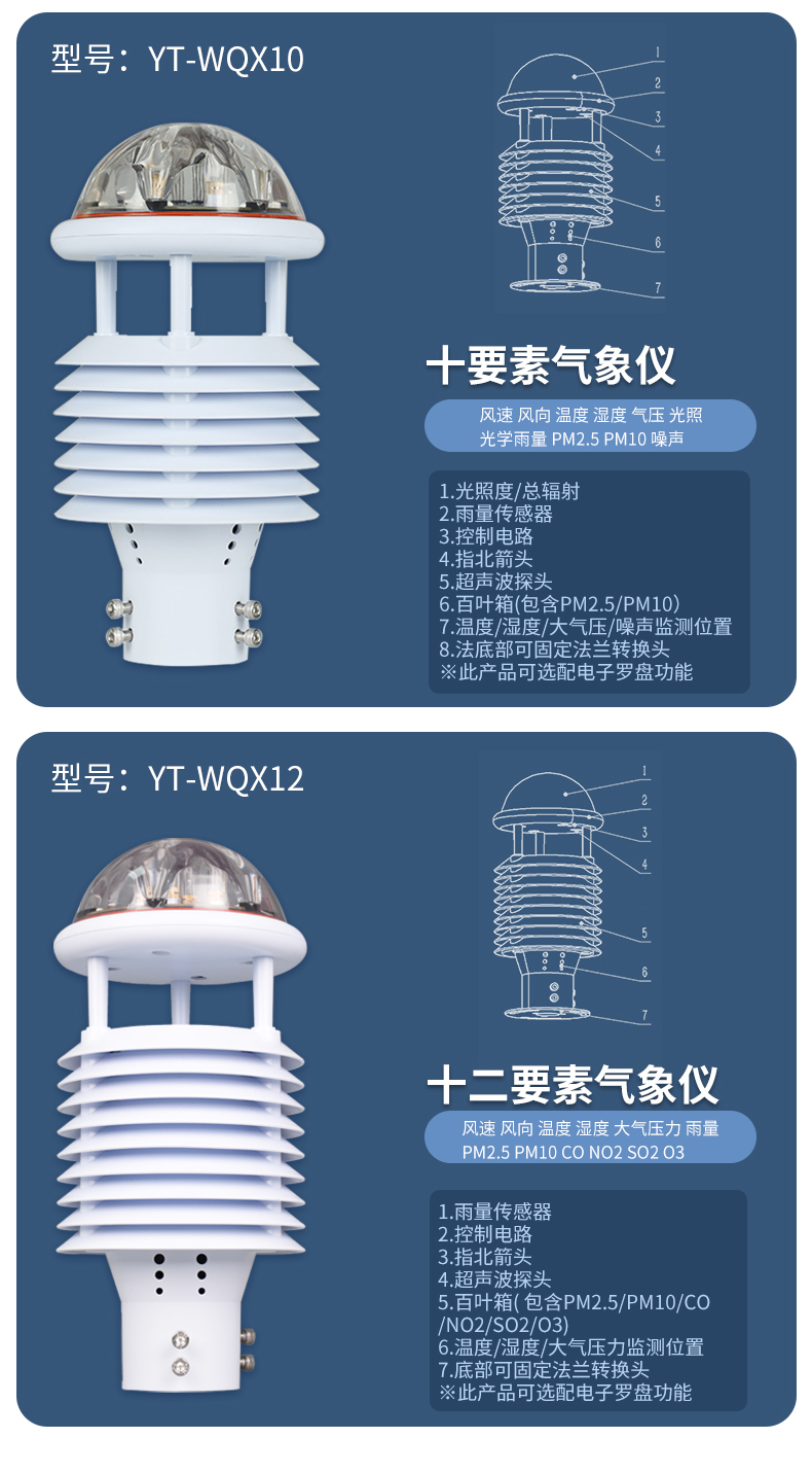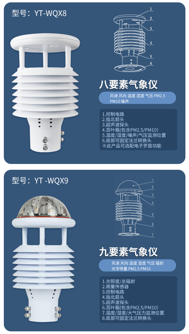 YT-WQX2型超聲波風速風向儀創新性地將風速、風向通過一個高集成度結構來實現,可實現戶外氣象參數24小時連續在線監測,通過數字量通訊接口將二項參數一次性輸出給用戶。