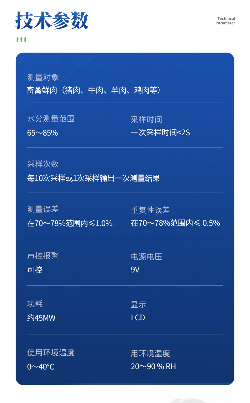 肉類水分測定儀 YT-RLS 技術參數: