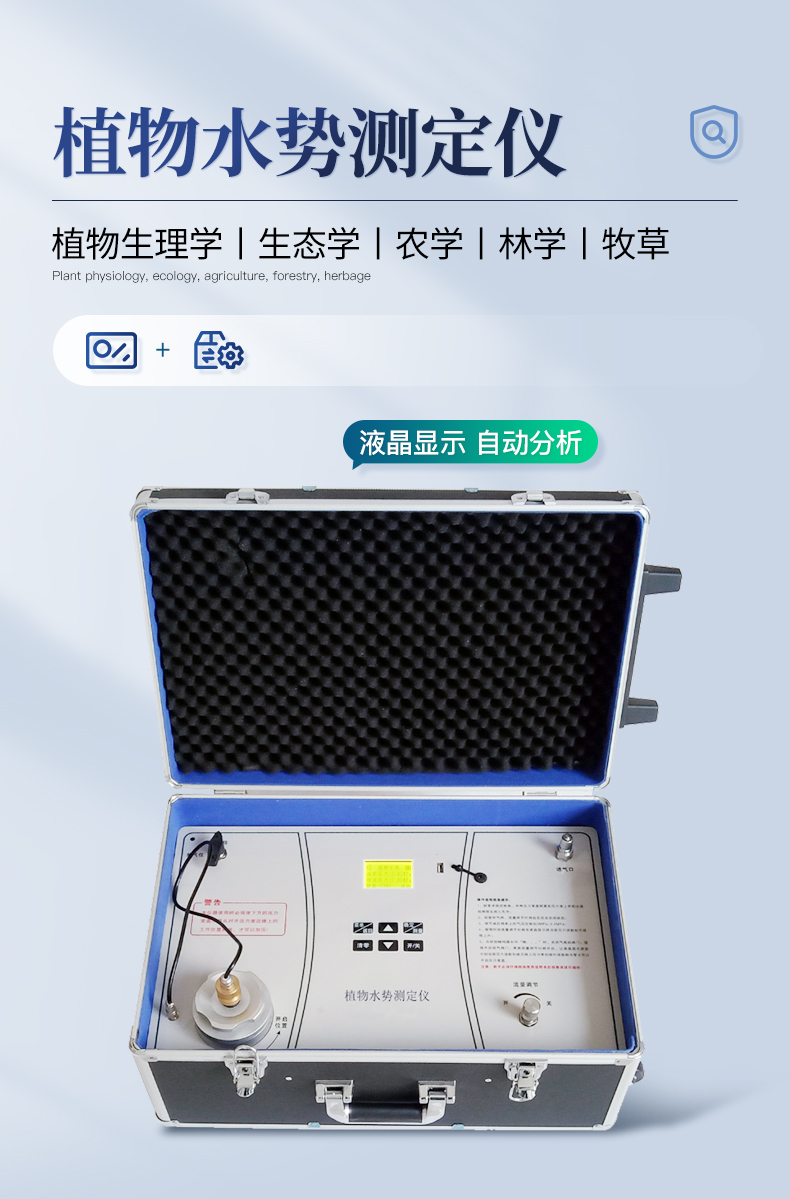 植物水勢儀是用于測定植物水份狀況和植物是否需要灌溉分析的一種儀器。可以利用此儀器研究植物的水分關系和植物與環(huán)境的關系。適用于植物生理學、生態(tài)學、農學、林學及牧草等的研究。據此指導作物及林草的合理用水和抗旱育種等工作,是從事農林教學和科研工作的重要儀器之一。它操作簡便,檢測快速,同時適用于室內和室外及野外測量。 技術參數(shù):