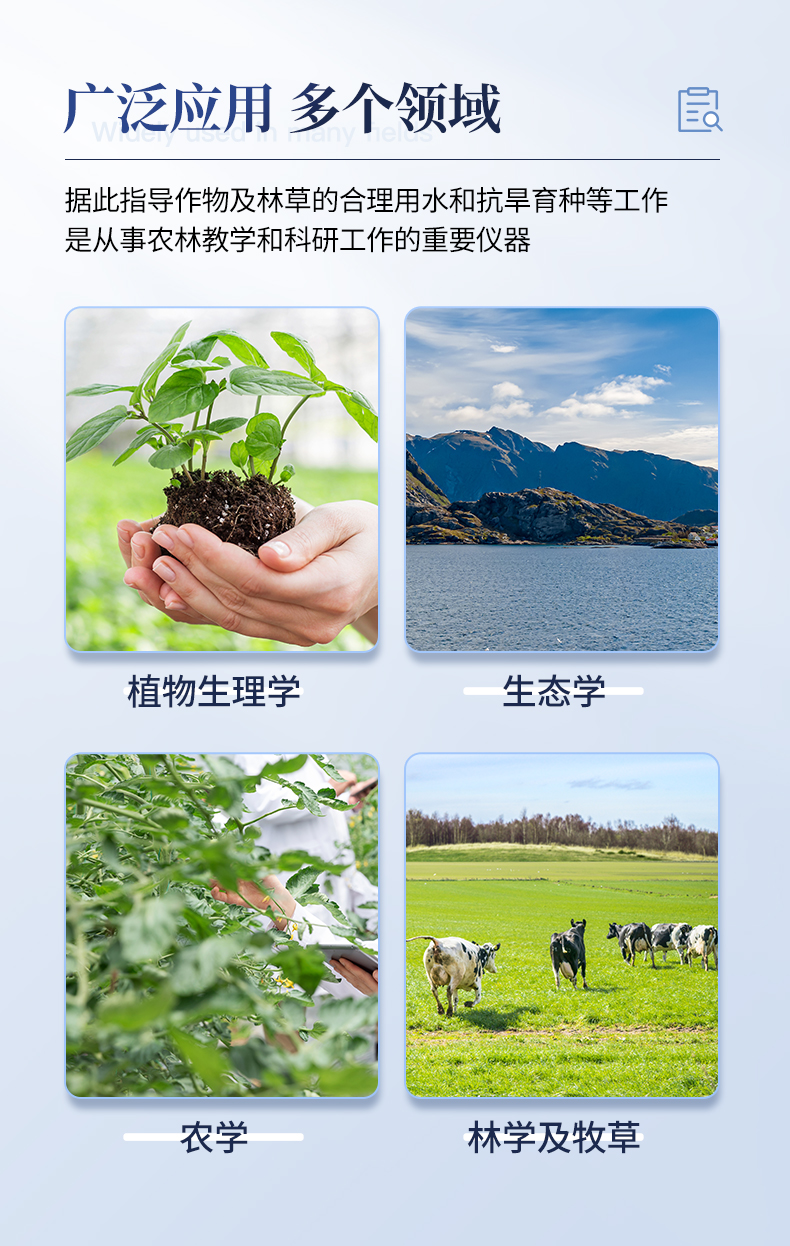 簡介:植物水勢儀是用于測定植物水份狀況和植物是否需要灌溉分析的一種儀器。可以利用此儀器研究植物的水分關系和植物與環(huán)境的關系。適用于植物生理學、生態(tài)學、農學、林學及牧草等的研究。據此指導作物及林草的合理用水和抗旱育種等工作,是從事農林教學和科研工作的重要儀器之一。它操作簡便,檢測快速,同時適用于室內和室