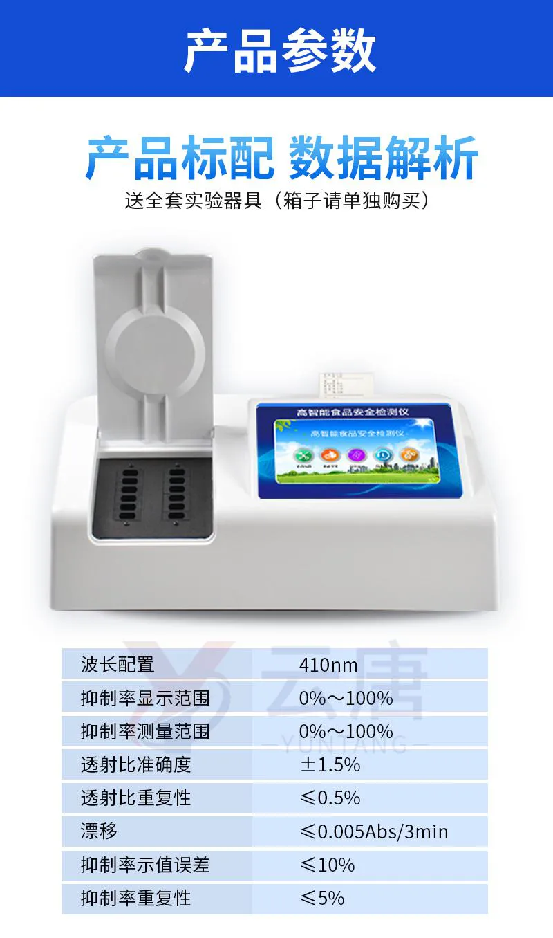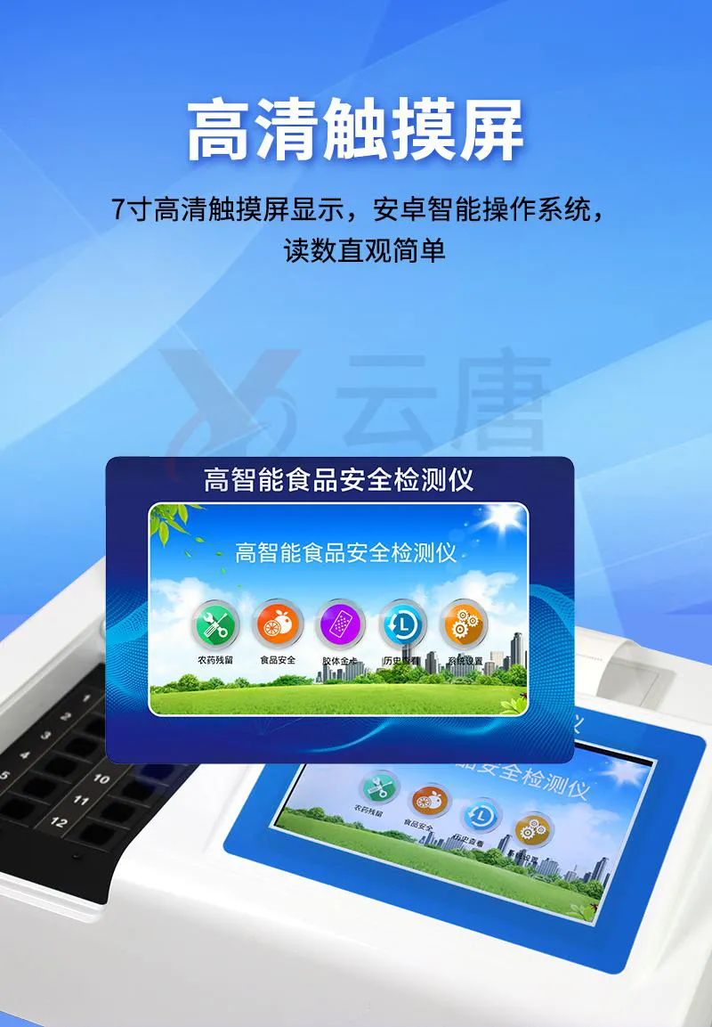 1、儀器采用臺式一體化系統(tǒng)檢測技術,將分光光度模塊、數(shù)字化管理模塊、無線通訊模塊高度集成于一體,支持檢測200種食品安全檢測項目,同時預留升級檢測方法。
