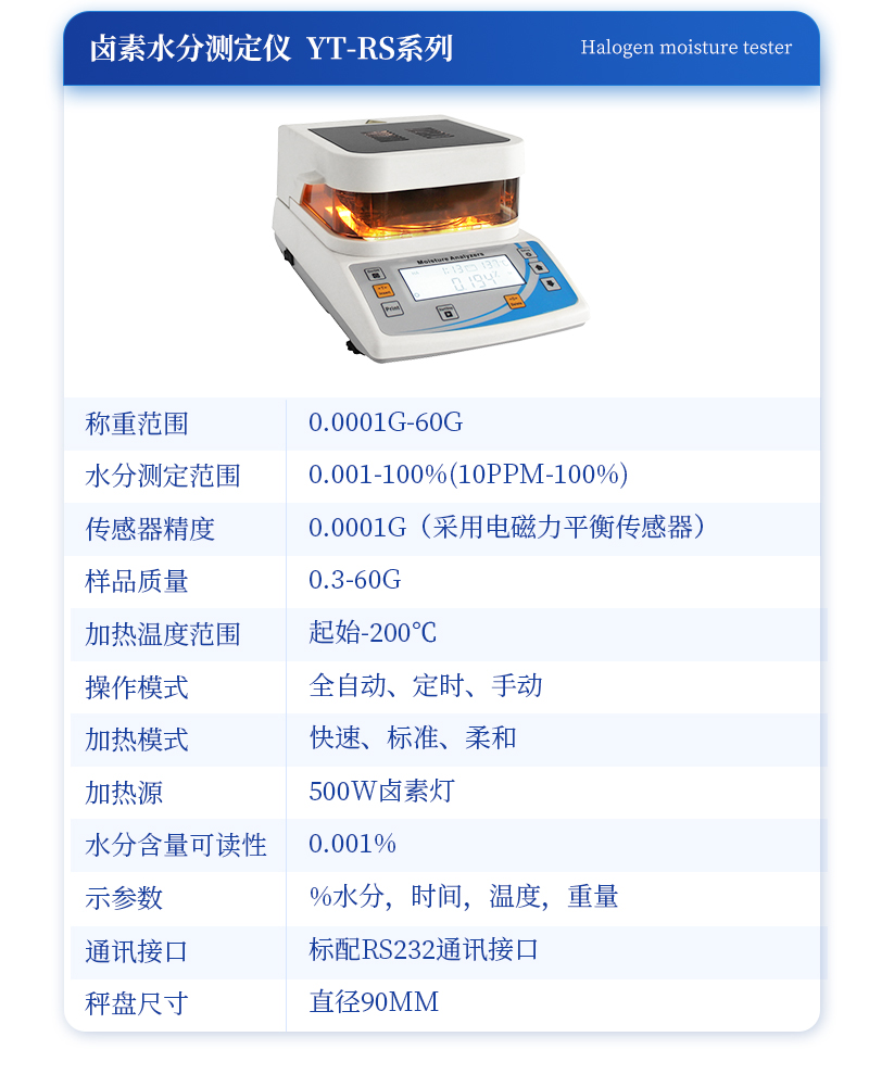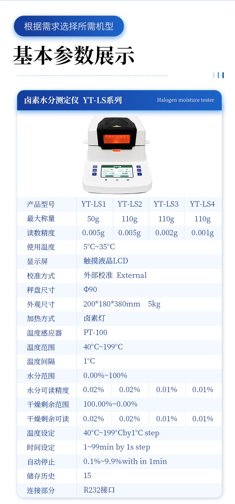 鹵素水分儀 YTY-LS1YT-LS2YT-LS3YT-LS4 技術參數: