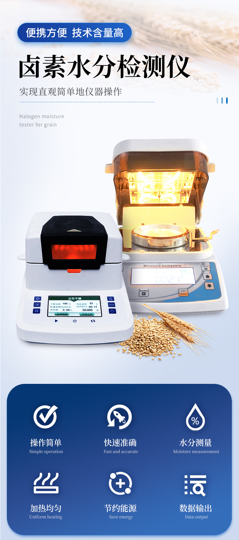 簡介:高精度鹵素水分儀稱量準確可靠、顯示快速清晰并且具有自動檢測系統、簡便的自動校準裝置以及超載保護等裝置