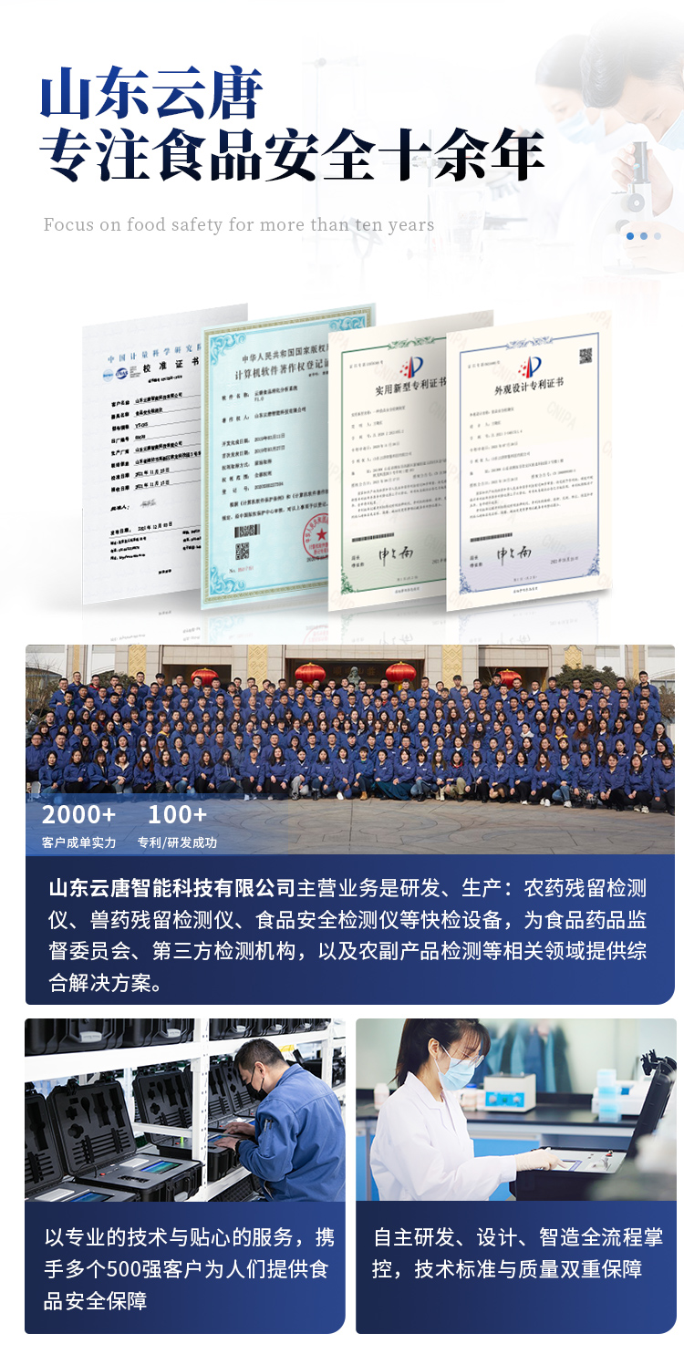 山東云唐智能科技有限公司生產(chǎn)的全項(xiàng)食品快檢箱,采用多功能集成、箱儀一體化設(shè)計(jì),以高強(qiáng)度安全防護(hù)箱為載體,內(nèi)部集成多個檢測功能,適用于食藥監(jiān)局、衛(wèi)生部門、高教院校、科研院所、農(nóng)業(yè)農(nóng)村局、食品深加工企業(yè)及檢驗(yàn)檢疫部門等單位。