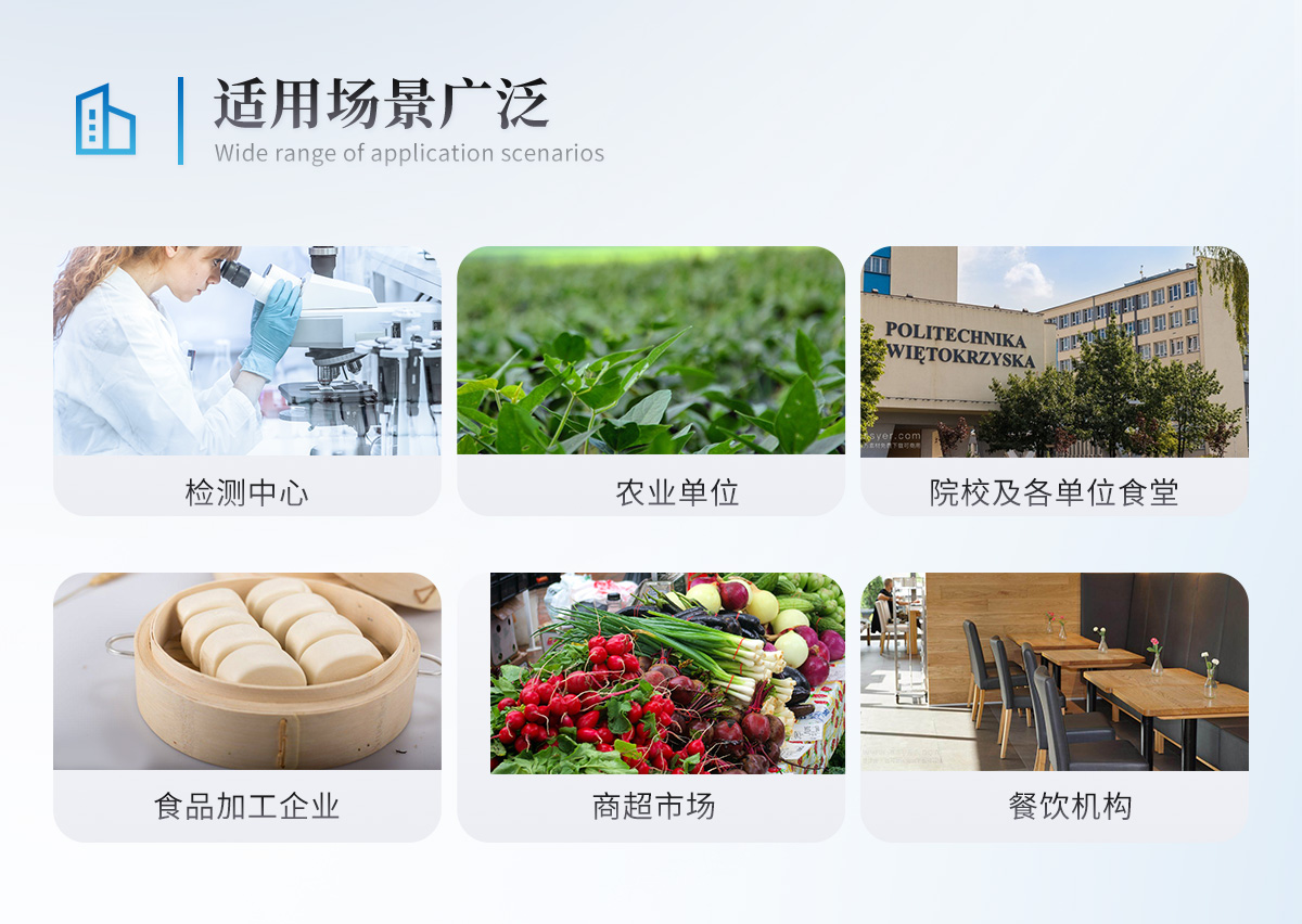 | 儀器采用臺(tái)式一體化系統(tǒng)檢測(cè)技術(shù),將分光光度模塊、新型農(nóng)殘檢測(cè)模塊、數(shù)字化管理模塊、無(wú)線通訊模塊高度集成于一體,支持檢測(cè)200種食品安全檢測(cè)項(xiàng)目,同時(shí)預(yù)留升級(jí)檢測(cè)方法。 | 儀器檢測(cè)模塊標(biāo)準(zhǔn)化、智能化,可隨意自由組合。檢測(cè)箱體內(nèi)置多個(gè)標(biāo)準(zhǔn)檢測(cè)單元,檢測(cè)模塊可以調(diào)整配置。 | 儀器采用全新安卓智能系統(tǒng),主控芯片采用 ARM Cortex-A7,RK3288/4核處理器,10.1寸高清液晶觸摸豎屏,更加**的UI交互界面,運(yùn)轉(zhuǎn)快捷;儀器配備無(wú)線通信模塊: 4G(APN)通訊模塊、Wifi模塊,藍(lán)牙傳輸,同時(shí)具有雙USB接口以及RJ45接口能以多種方式實(shí)現(xiàn)數(shù)據(jù)保存和數(shù)據(jù)傳輸功能。 | 創(chuàng)新檢測(cè)模式: | ★檢測(cè)通道:≥12通道;采用精密旋轉(zhuǎn)比色池設(shè)計(jì),使用同芯片同光源校準(zhǔn)精度,解決不同光源之間的誤差值。1-12通道間誤差0.1%。(**號(hào):**202022821055.2) | ★儀器具有自動(dòng)識(shí)別比色皿檢測(cè)功能,即:將樣品比色皿放入儀器后,點(diǎn)擊樣品檢測(cè),儀器自動(dòng)識(shí)別比色皿進(jìn)行通道檢測(cè)。 | 進(jìn)口高精光源: | 高精度進(jìn)口四波長(zhǎng)冷光源,通道配置 410、520、590、630nm 波長(zhǎng)光源,一個(gè)光源芯片驅(qū)動(dòng)一個(gè)光源,誤差極小,每臺(tái)設(shè)備單獨(dú)**校準(zhǔn)光源,**比對(duì),同時(shí)參照四種不同波段光源全方位覆蓋市面上99%的農(nóng)殘食品項(xiàng)目檢測(cè)。 | 智能化操作系統(tǒng): | 便捷操作系統(tǒng):設(shè)備檢測(cè)時(shí)可在同一檢測(cè)界面自動(dòng)對(duì)應(yīng)相關(guān)檢測(cè)通道一次性選擇1-12個(gè)樣品名稱,無(wú)須退出界面,節(jié)省操作時(shí)間。 | 數(shù)據(jù)集成系統(tǒng):設(shè)備首頁(yè)自動(dòng)統(tǒng)計(jì)檢測(cè)數(shù)據(jù)包含:周檢測(cè)數(shù)據(jù)、月檢測(cè)數(shù)據(jù),全部檢測(cè)總數(shù)量,均包含檢測(cè)總數(shù),合格數(shù),不合格數(shù),以及相關(guān)柱形分析圖,對(duì)各項(xiàng)檢測(cè)數(shù)據(jù)清晰掌握,無(wú)需電腦查詢,更加快捷直觀。 | 項(xiàng)目預(yù)設(shè)系統(tǒng):支持添加單個(gè)及多個(gè)相同或不相同的任務(wù)預(yù)設(shè),一鍵快速調(diào)取,每一個(gè)任務(wù)分別可以設(shè)置不同的樣品、批次、編號(hào)、來(lái)源、備注、抽樣信息、檢測(cè)信息、受檢信息、復(fù)核信息等更多信息。無(wú)縫鏈接平臺(tái)和APP實(shí)時(shí)查看下發(fā)任務(wù)。 | 數(shù)據(jù)監(jiān)管系統(tǒng):同步對(duì)接監(jiān)管平臺(tái),數(shù)據(jù)可局域網(wǎng)和互聯(lián)網(wǎng)數(shù)據(jù)上傳,檢測(cè)結(jié)果可選擇直接傳至食品安全監(jiān)管平臺(tái)。集成OSS輸出存儲(chǔ)服務(wù)、區(qū)分設(shè)備定向管理應(yīng)用,進(jìn)行區(qū)域食品安全監(jiān)管及大數(shù)據(jù)分析處理與數(shù)據(jù)統(tǒng)計(jì),檢測(cè)區(qū)域食品安全長(zhǎng)短期動(dòng)態(tài),達(dá)到食品安全問(wèn)題預(yù)估、預(yù)警。 | 自定義打印系統(tǒng):內(nèi)置全新打印系統(tǒng),新創(chuàng)自定義打印方式,可按需靈活設(shè)置開(kāi)啟或關(guān)閉:產(chǎn)品合格證(國(guó)家農(nóng)業(yè)部標(biāo)準(zhǔn)要求),二維碼,抽樣信息、檢測(cè)信息,受檢信息、復(fù)核信息、抽樣日期、檢測(cè)日期等信息的打印。 | 系統(tǒng)遠(yuǎn)程更新功能:可定向分客戶分儀器更新系統(tǒng),按照不同客戶后期實(shí)際需求添加項(xiàng)目,無(wú)需機(jī)器返廠,即可遠(yuǎn)程實(shí)時(shí)升級(jí)全新系統(tǒng),節(jié)省時(shí)間成本及避免運(yùn)輸造成設(shè)備損壞。 | 儀器主機(jī)采用一體化防水、抗壓、防撞擊、防腐蝕箱體設(shè)計(jì),同時(shí)配備交直流供電,可連接車載電源,可選配大容量充電鋰電池,滿足現(xiàn)場(chǎng)野外檢測(cè)需求。 | 安全證書(shū),放心保障:儀器具有中國(guó)計(jì)量科學(xué)研究院校準(zhǔn)證書(shū),權(quán)威認(rèn)證。 |