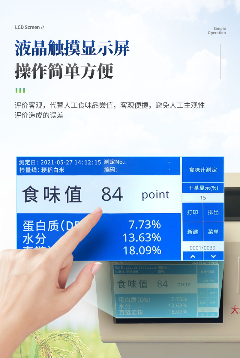 1、評價客觀,代替人工食味品嘗值,客觀便捷,避免人工主觀性評價造成的誤差。