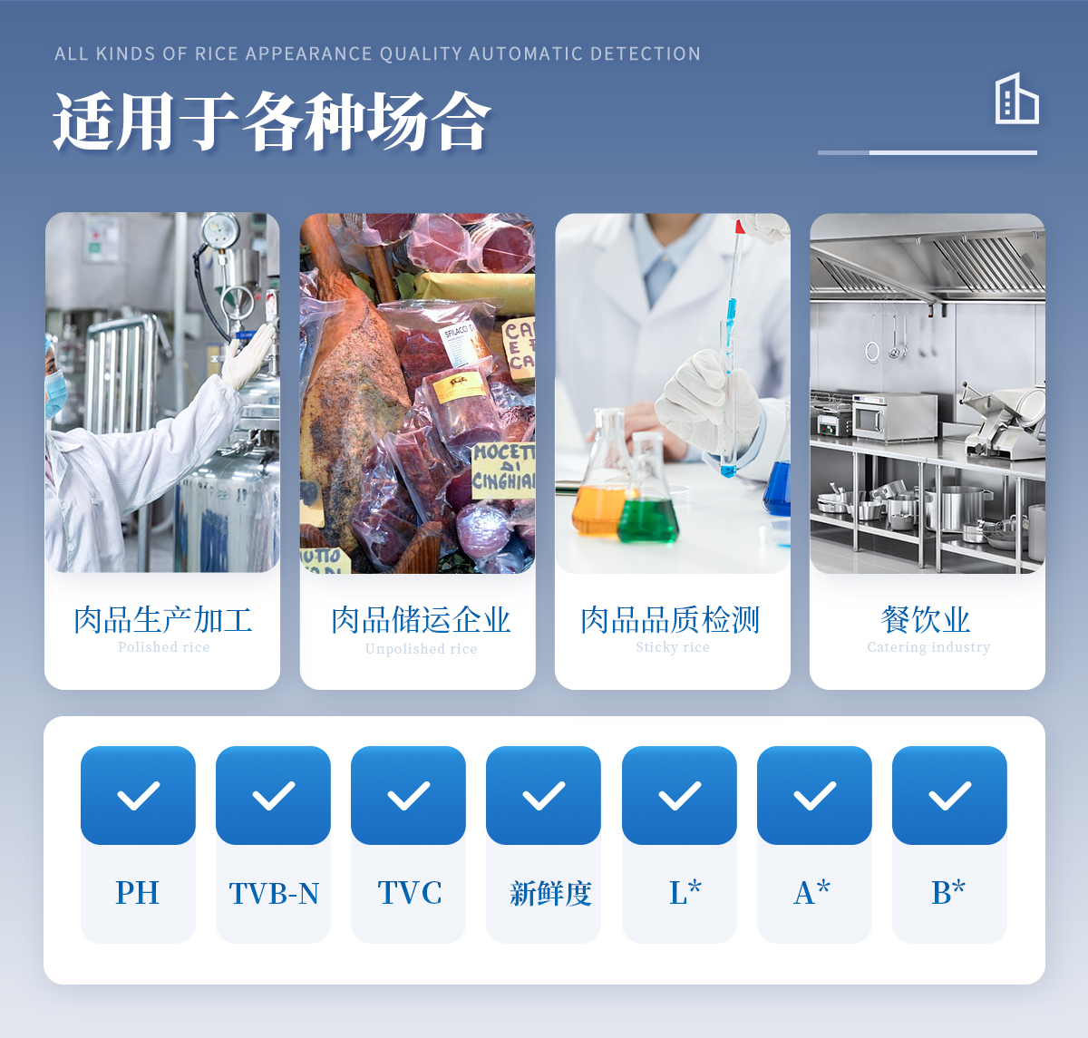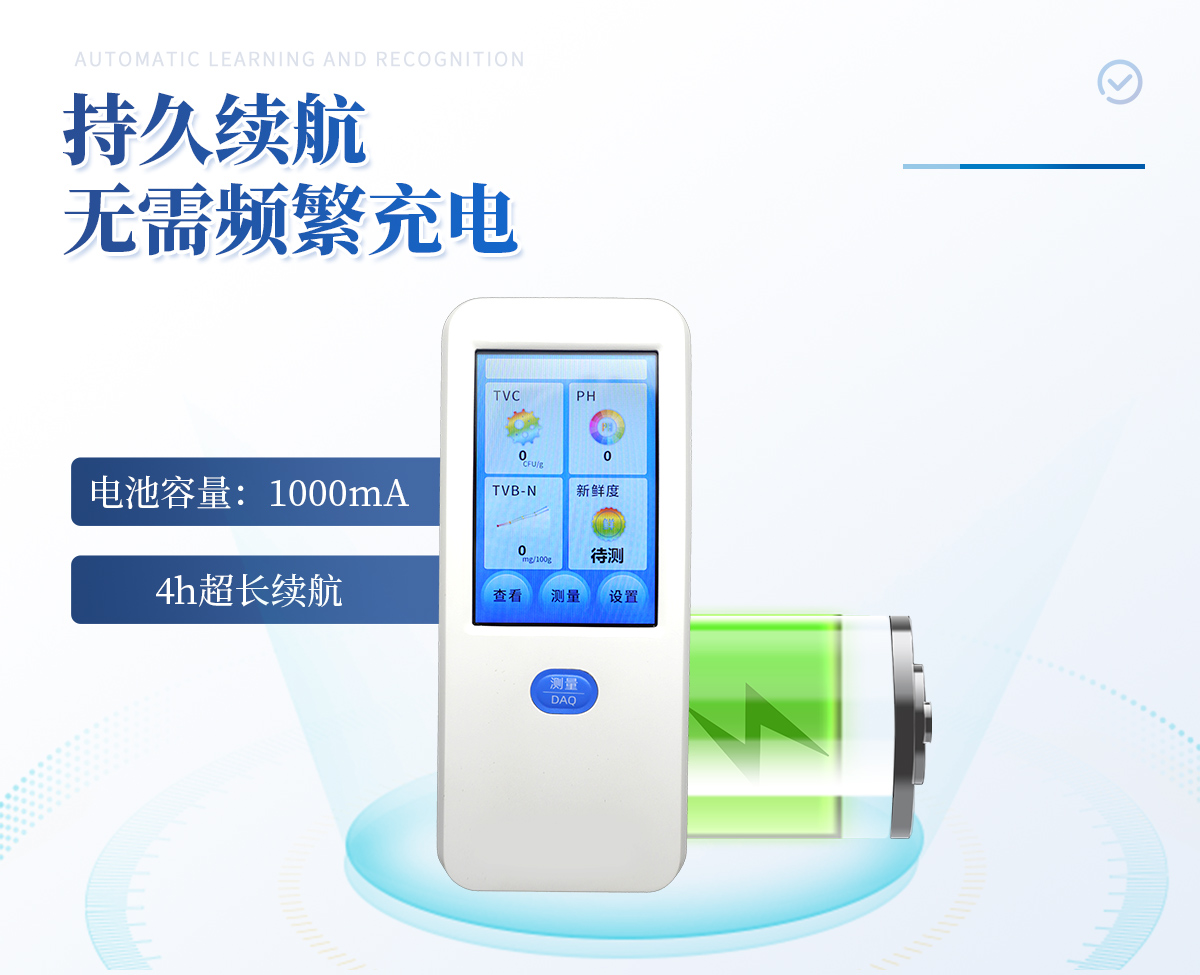 聯(lián)合中國(guó)農(nóng)業(yè)大學(xué)彭彥昆教授團(tuán)隊(duì)研發(fā)的掌上式生鮮肉新鮮度分析儀,可用于檢測(cè)生鮮肉的TVC、pH、TVB-N、新鮮度、L*、A*、B*等評(píng)價(jià)指標(biāo)。Palmarter具有體積小、便 于攜帶、性?xún)r(jià)比高等特點(diǎn),其應(yīng)用場(chǎng)景包括但不限于肉儲(chǔ)運(yùn)企業(yè)、肉品品質(zhì)監(jiān)管部門(mén)、飯店、超市、菜場(chǎng)、家庭等。