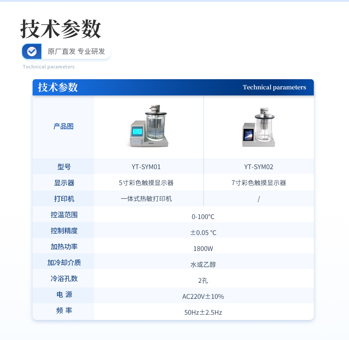 | ★顯示器:5寸彩色觸摸顯示器 | ★打印機:一體式熱敏打印機 | ★控溫范圍:0-100℃ | ★控制精度:±0.05 ℃ | ★加熱功率:1800W | ★加冷卻介質:水或乙醇 | ★冷浴孔數:2孔 | ★電 源:AC220V±10% | ★頻 率:50Hz±2.5Hz |