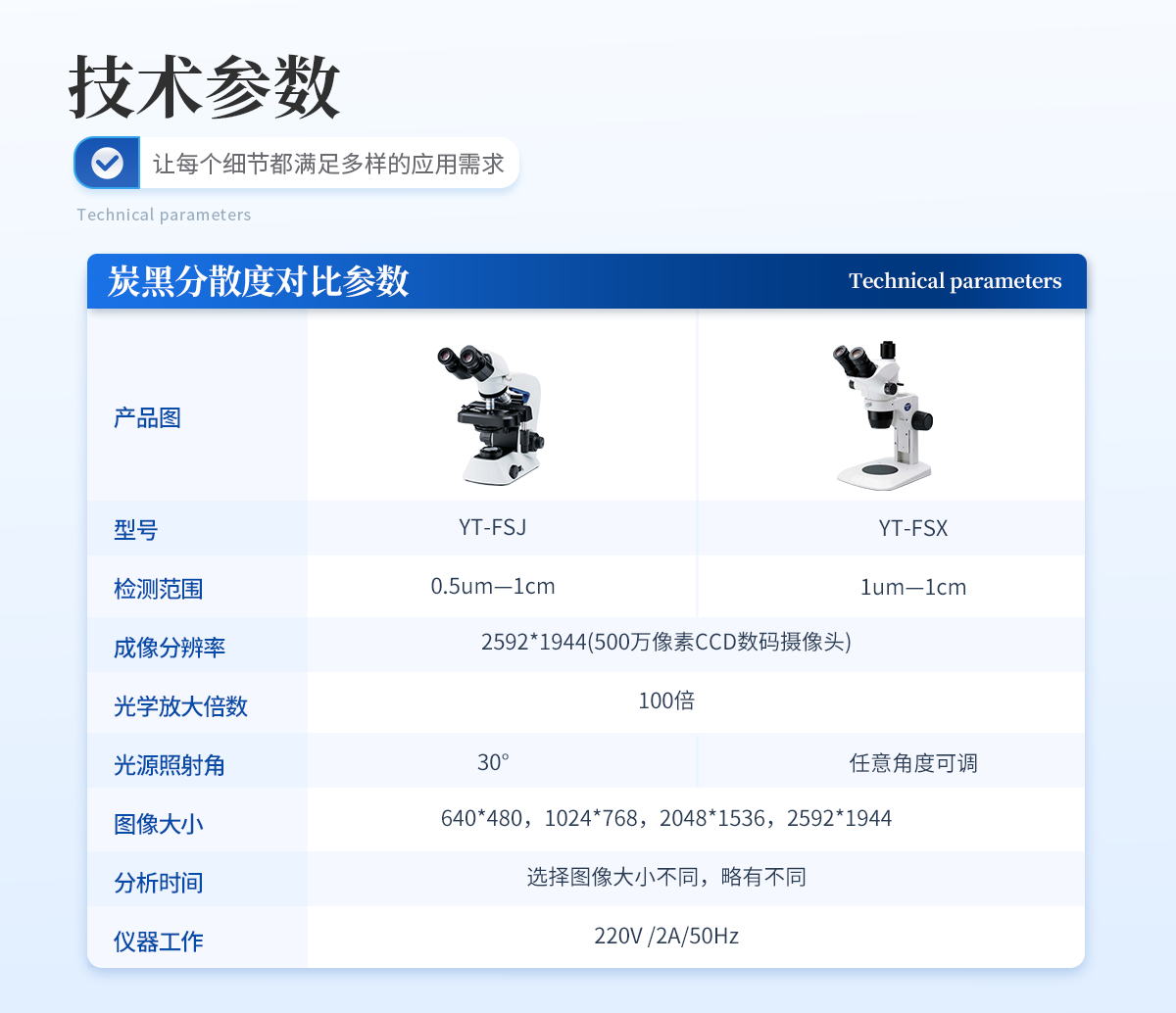 | 1、檢測范圍 0.5um—1cm; | 2、成像分辨率2592*1944(500萬像素CCD數(shù)碼攝像頭); | 3、光學放大倍數(shù) 100倍 | 4、光源照射角 30°; | 5、圖像大小 640*480,1024*768,2048*1536,2592*1944; | 6、分析時間 選擇圖像大小不同,略有不同; | 7、儀器工作電源 220V /2A/50Hz |