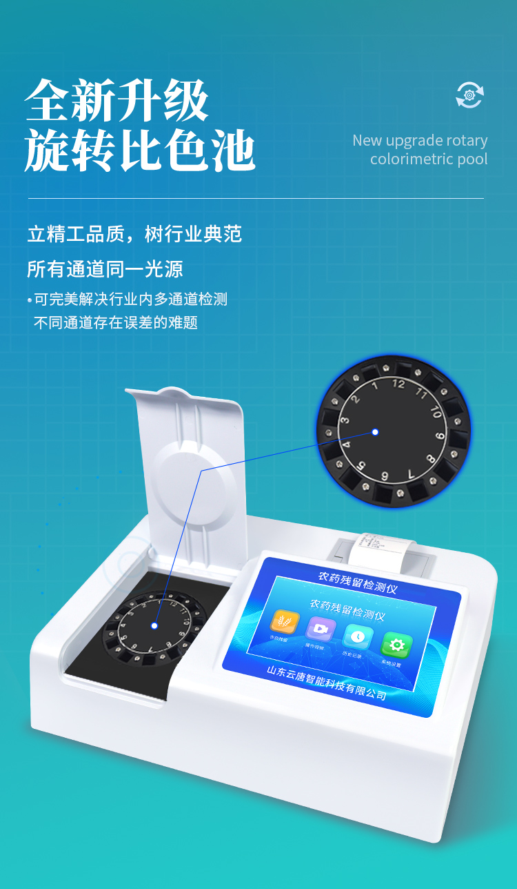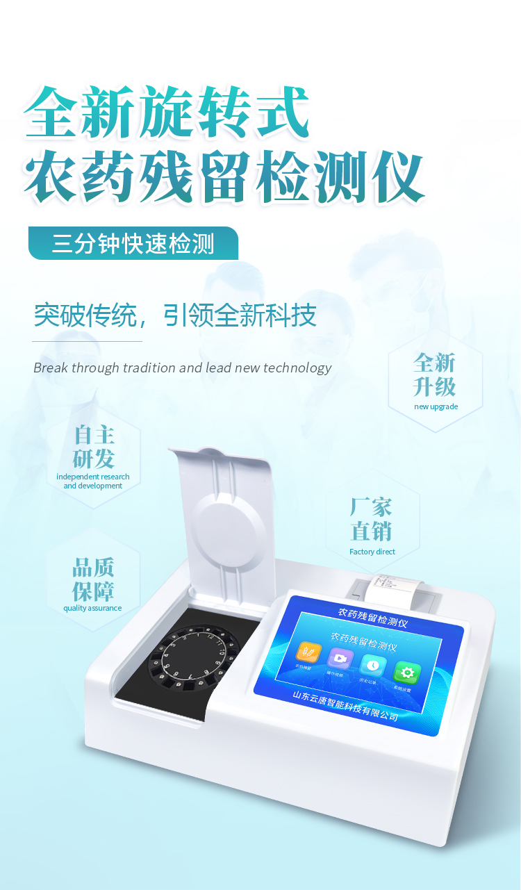 山東云唐智能科技有限公司生產的農藥殘留檢測儀廣泛應用于主要用于蔬菜、水果、茶葉、糧食、農副產品等食品中農藥殘留的快速檢測,依據國標GB/T5009.199-2003進行檢測,適用于果蔬茶生產基地以及農貿批發銷售市場現場檢測,餐館、學校、食堂、家庭果蔬加工前的安全速測等。