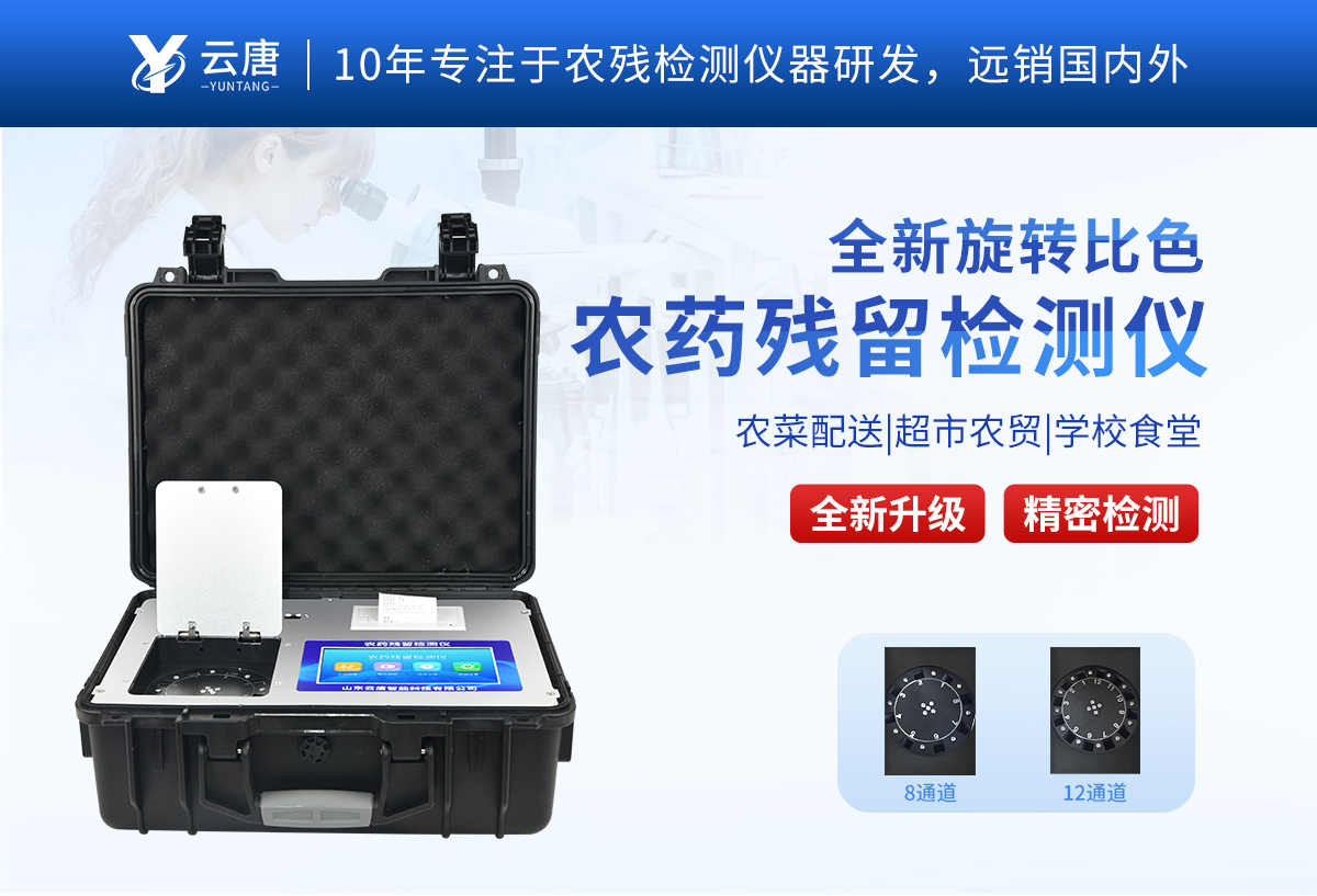山東云唐智能科技有限公司生產的農藥殘留檢測儀廣泛應用于主要用于蔬菜、水果、茶葉、糧食、農副產品等食品中農藥殘留的快速檢測,依據國標GB/T5009.199-2003進行檢測,適用于果蔬茶生產基地以及農貿批發銷售市場現場檢測,餐館、學校、食堂、家庭果蔬加工前的安全速測等。