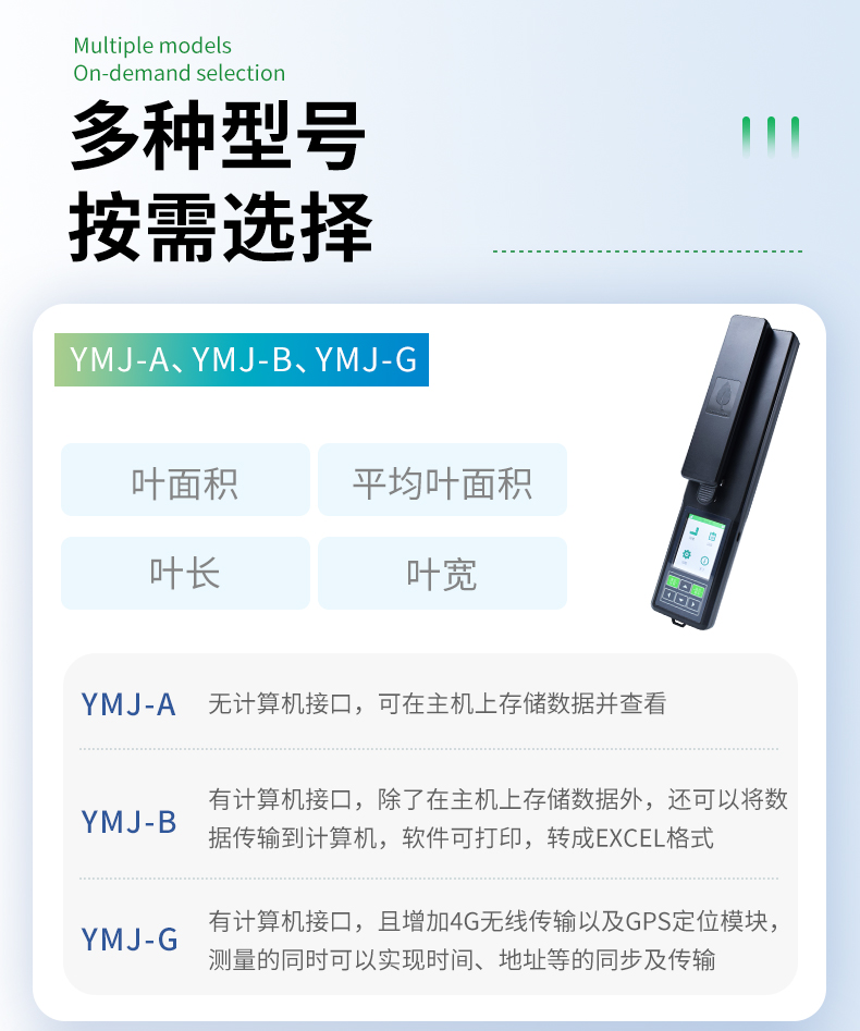 手持式葉面積儀型號區別: