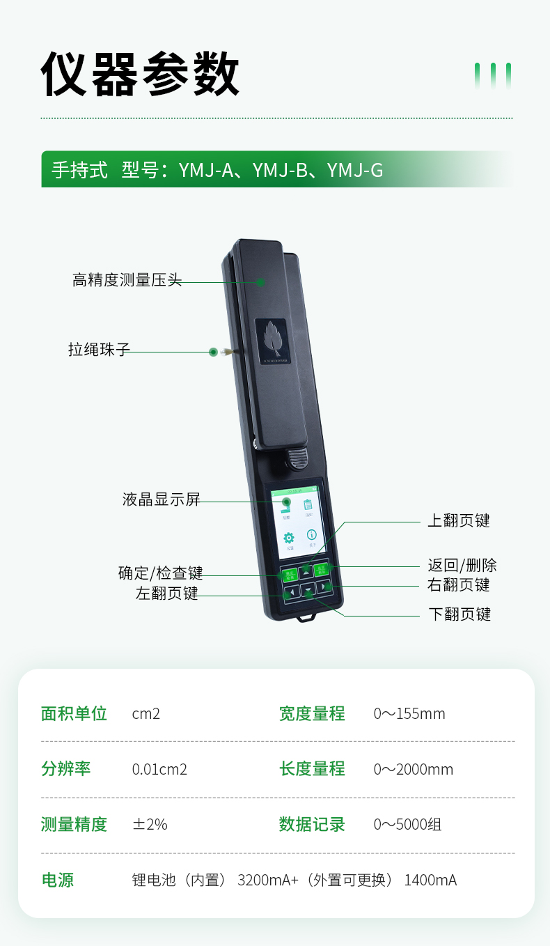 手持式葉面積儀技術參數:
